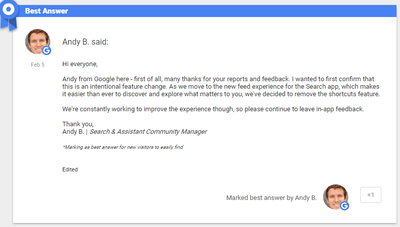 Doch vor einigen Tagen sind diese Icons plötzlich bei allen Nutzern aus der App verschwunden und stehen nicht mehr zur Verfügung. Jetzt hat Google offiziell bestätigt, dass diese Reihe zugunsten des Feeds und der Suchfunktion eingestellt wurde. Wer die Buttons häufig genutzt hat wird nun enttäuscht sein, denn es gibt keine Möglichkeit sie optional wieder einzublenden noch einen guten Ersatz für diese Leiste.