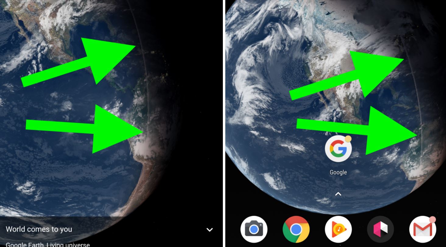 Auf der Weltkarte von Google Earth und Maps stört das natürlich nicht und fällt vielen Nutzer vermutlich nicht einmal auf. Anders sieht es aber auf dem Smartphone aus, denn einige Pixel 2-Nutzer verwenden genau ein solches Livebild der Erde als Live-Hintergrund. Dort ist der Streifen ebenfalls sehr gut zu sehen, und wirkt eher wie ein Fehler auf dem Display bzw. kann dort auch etwas störend sein. Entfernen lässt sich der Streifen nicht, denn auch nach einem Neustart des Smartphones taucht er nach etwa 15 Minuten wieder auf.