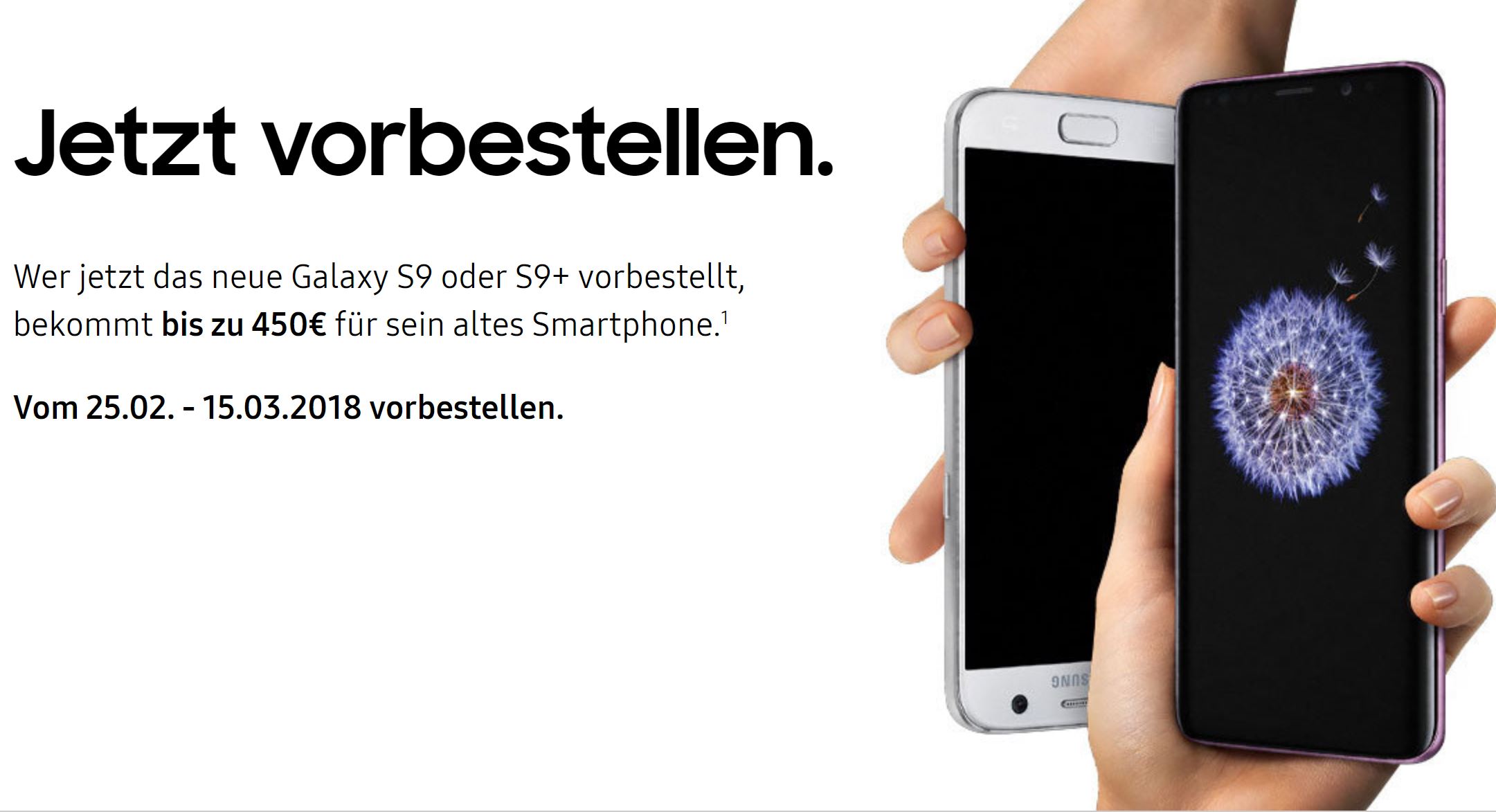 Wer sich für das neue Galaxy S9 begeistern kann (Alle Informationen hier), kann es schon jetzt vorbestellen und dabei bis zu 450 Euro Eintauschbonus sparen. Damit bekommt man das Smartphone praktisch zum halben Preis – wenn man denn ein Galaxy S8+ dafür abgibt. Eine Tabelle mit allen Prämien für die diversen Smartphones findet ihr in folgender Tabelle.