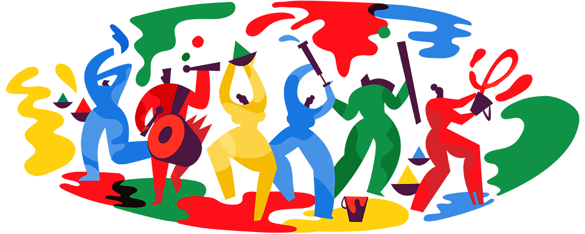 Das Doodle zum Holi Fest orientiert sich in diesem Jahr wieder sehr an der indischen Tradition, setzt aber zur Einfärbung natürlich auf die klassischen Google-Farben, die das Logo zumindest teilweise wieder erkennen lassen. Zu sehen ist, wie Freunde und Familie zusammenkommen und gemeinsam das Fest zelebrieren. Das heutige Doodle wurde von Amrita Marino erstellt und ist in Indien, Estland, UK und den USA zu sehen.
