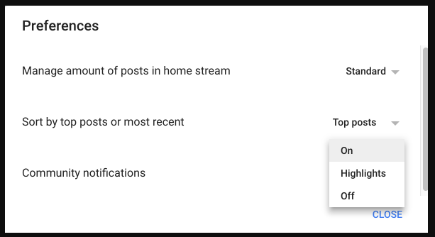 Google+ Einstellungen: Nur Highlights aus den Communites und Sammlungen anzeigen