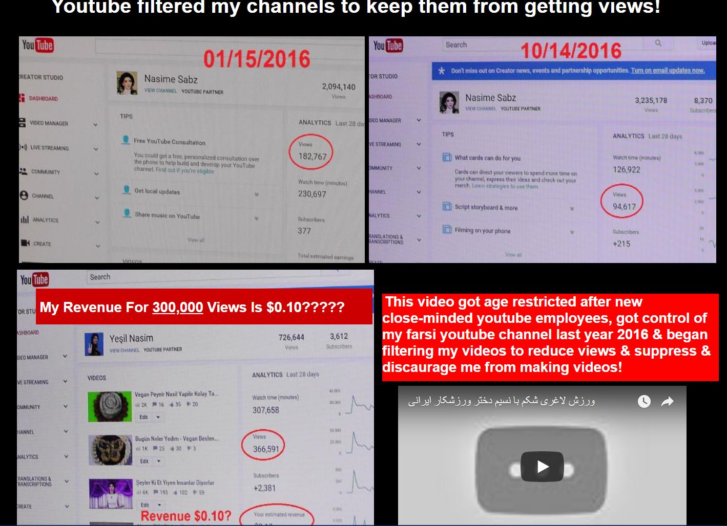 YouTube hatte Aghdams Kanäle mehrmals gesperrt, ihr die Monetarisierung entzogen und laut ihren eigenen Statements auch Views entfernt. Wenn man sich die Webseite etwas genauer ansieht, dann wird aber auch sehr schnell klar, dass diese Sperren sehr wahrscheinlich auch gerechtfertigt gewesen sind. Laut Medienberichten soll sie durch die Sperren ihre finanziellen Lebensgrundlagen verloren haben. Dem widersprechen aber weitere Screenshots, laut denen sie nicht mehr als 10 Cent für ein erfolgreiches Video verdient haben soll.