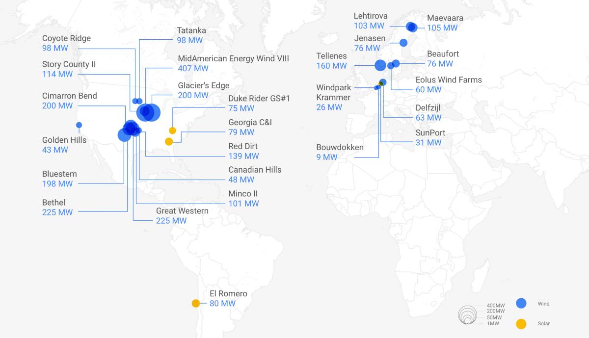 Mehr als 3 Gigawatt: Google produziert jetzt mehr Erneuerbare Energien als es verbraucht (Infografiken)
