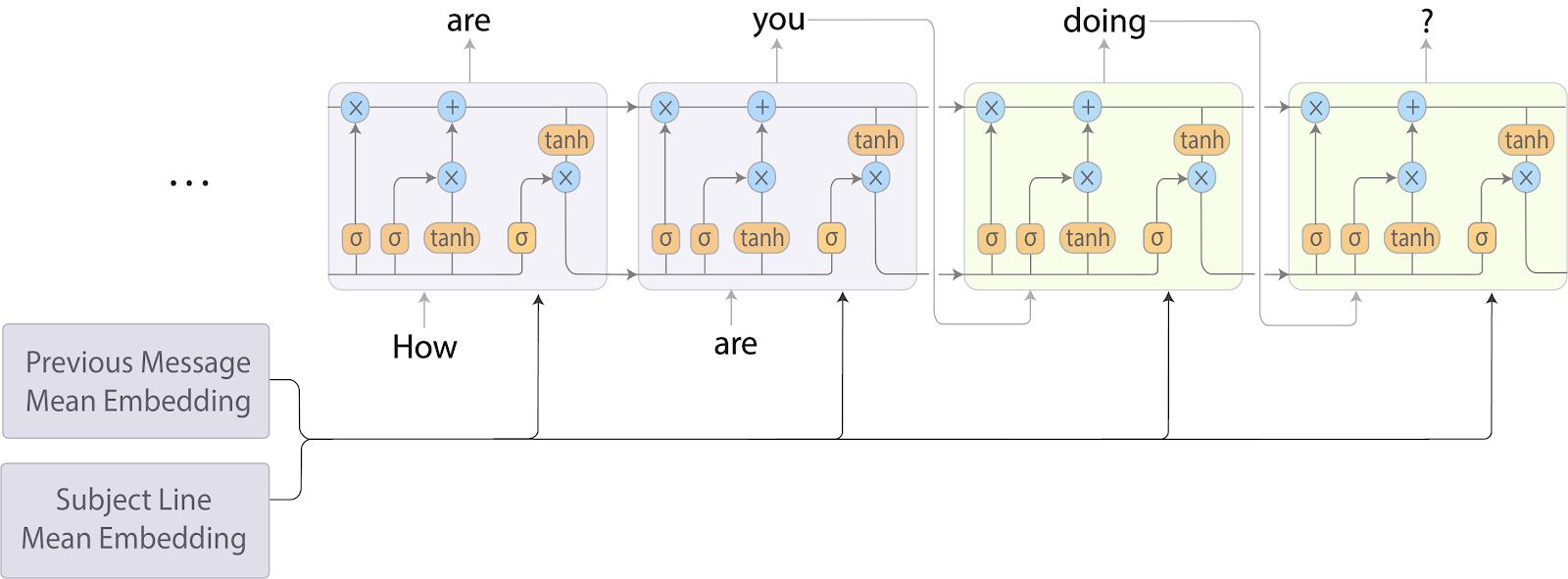 Um das zu erreichen, hat das Team eine Reihe von etablierten Technologien ausprobiert, die zwar allesamt eine gute Qualität geliefert haben, aber nicht innerhalb von maximal 100 Millisekunden eine Antwort liefern konnten. Also hatte man eine Kombination aus Bag of Words und RNN ausgewählt. Diese macht nach jeder Eingabe einen neuen Vorschlag, so wie das in obigem Diagramm zu sehen ist.