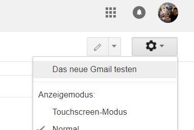 Die Grundlage für die meisten der folgenden Tipps ist die neue GMail-Oberfläche, die von jedem Nutzer optional schon jetzt verwendet werden kann und früher oder später zum Standard erklärt wird. Da man ohnehin nicht drumherum kommt, ist es also eine gute Idee, sich schon jetzt damit anzufreunden. Wählt dazu einfach nur im Zahnrad oben rechts den Punkt „Das neue Gmail testen“ aus und schon wird die neue Oberfläche geladen und dauerhaft verwendet. Der Wechsel zurück funktioniert auf dem gleichen Weg. Wer grundlegende Englisch-Kenntnisse hat, sollte GMail (und andere Google-Produkte) in Englisch verwenden, denn hier gibt es neue Features häufig zuerst.