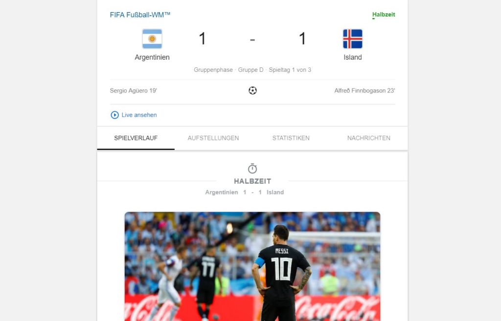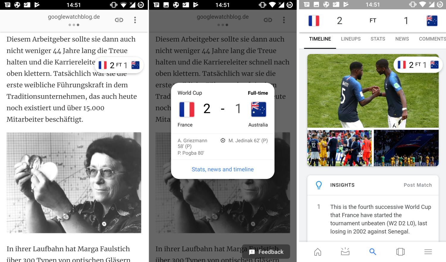 » Fußball-Weltmeisterschaft 2018: Neues schwebendes Google-Widget informiert Live über Spielstände