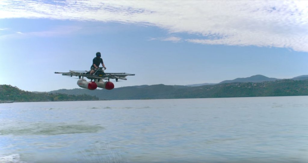 Im Vergleich zum ersten Prototypen (Bild oben) hat sich doch schon einiges verändert. Während der Fahrer damals noch auf dem Gerät saß – so wie auf einem Motorrad oder Jetski – sitzt man nun IN dem Gerät. Aus Sicherheitsgründen wäre alles andere möglicherweise auch zu gefährlich. Tatsächlich sollte der Flyer schon Ende 2017 erhältlich sein, aber daraus wurde bisher noch nichts. Beschrieben wurde er folgendermaßen: