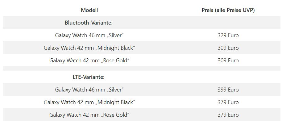 Die Galaxy Watch-Modelle werden ab dem 7. September in Deutschland erhältlich sein.