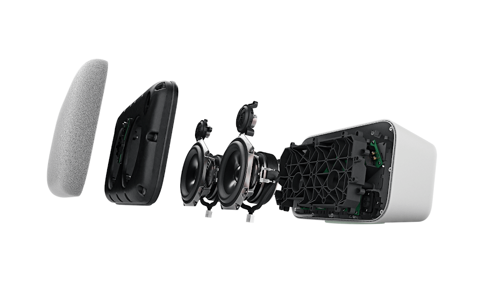 Mit Smarter Sound-Technologie ist der Google Home Max ausgestattet und dank künstlicher Intelligenz von Google passt sich der Google Home Max von alleine dem Raum an. Über sechs Mikrofone stellt Home Max den Equalizer passend zum Raum ein und das ohne eine Interaktion durch den Nutzer.