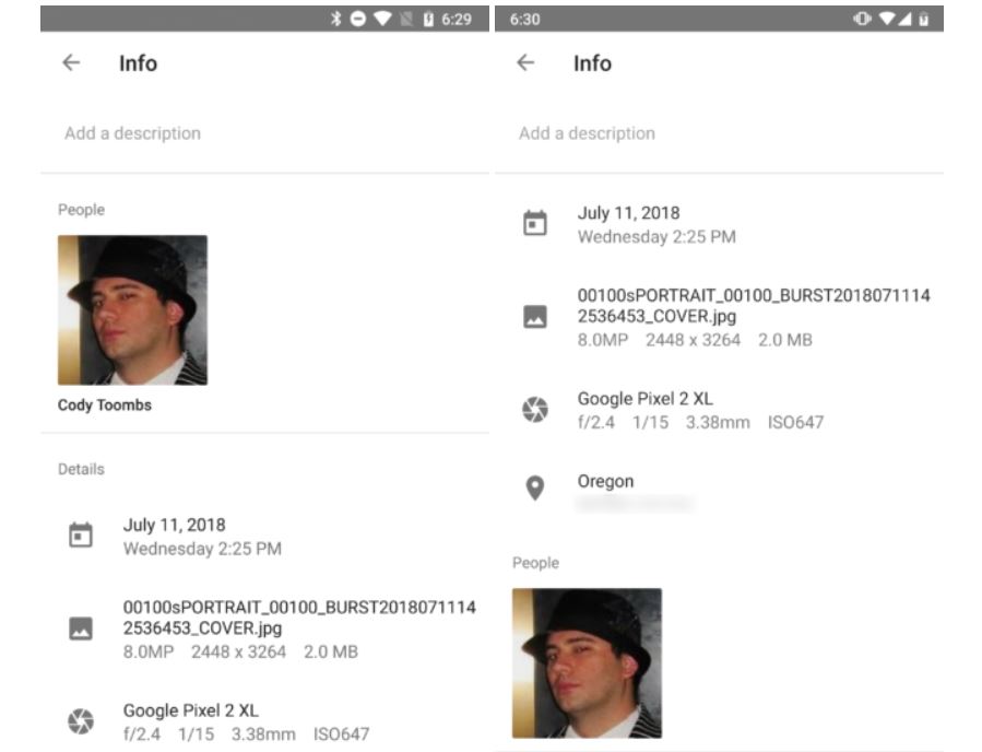 Die einzige kleine für uns relevante Veränderung gab es auf der Detailseite der Fotos: Auf einem Foto erkannte Personen werden nun nicht mehr ganz oben, sondern ganz unten mit ihrem Avatar angezeigt. Da die reinen Foto-Informationen dann doch etwas wichtiger sind, eine sinnvolle Änderung. Besonders weil es seit kurzem möglich ist, den Aufnahmeort und weitere Metadaten zu ändern.