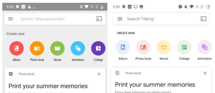 Auch in anderen Bereichen haben die Designer lediglich in den Farbtopf gegriffen und etwas hellere Töne verwendet, wie hier bei der Erstellung von neuen Bildern und Videos gut sichtbar ist. Das spricht insgesamt für Google Photos, da das Design eigentlich schon seit langer Zeit sehr modern gewesen ist – was man im Alltag natürlich gerne wieder vergisst. Da der Fokus auf Fotos und nicht Textinhalten liegt, war das an dieser Stelle aber kein großes Problem.