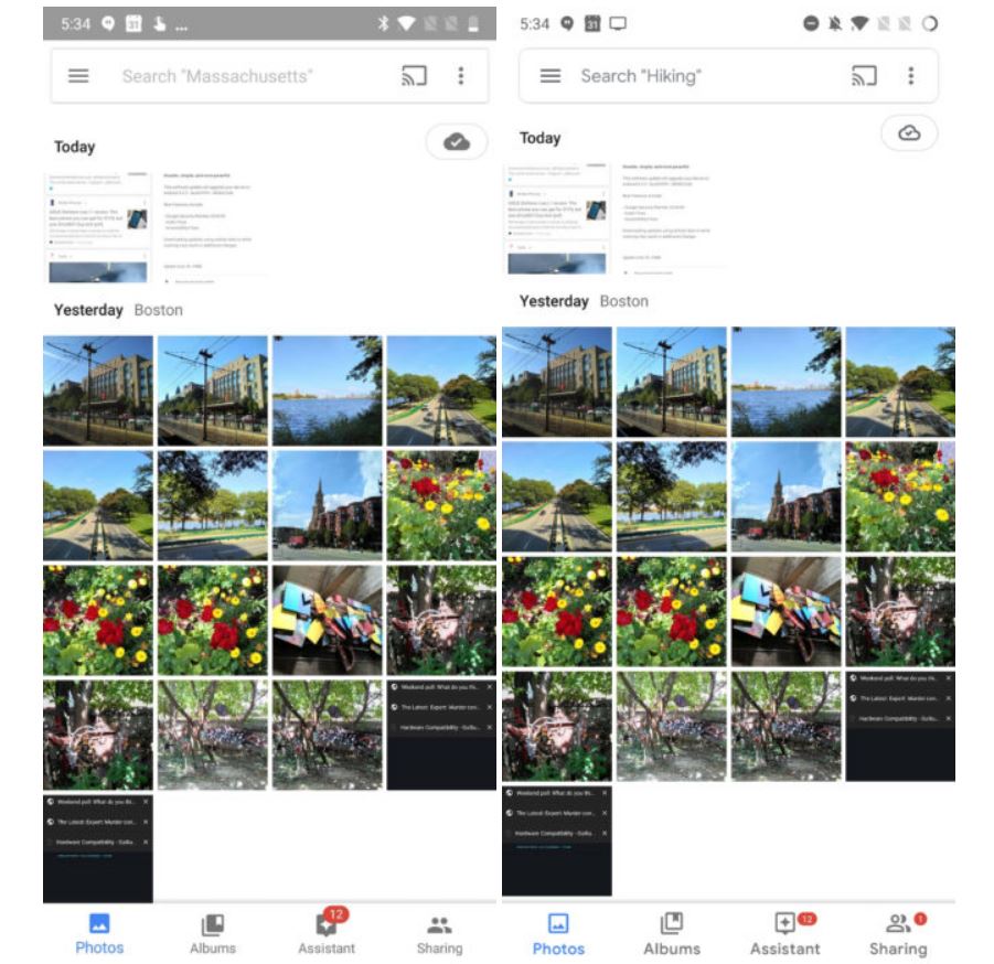 Jetzt hat auch Google Photos eine modernisierte Oberfläche bekommen, die auf den ersten Blick aber gar nicht als solche zu erkennen ist, wie ihr auf den Screenshots sehen könnte. Links ist das alte, rechts das neue Design. Die Benachrichtigungsleiste ist nun Weiß statt Grau, das Suchfeld hat leicht abgerundete Ecken, die verwendete Schriftart wurde geändert und die Icons sind, soweit wie möglich, nicht mehr ausgefüllt.