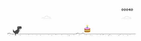 Es handelt sich dabei um das Dino Birthday Easteregg. Das Dino-Spiel dürften viele Nutzer (leider) kennen, da es immer dann auftaucht, wenn keine Verbindung zum Internet möglich ist. Der Dinosaurier trägt heute einen Partyhut und muss nicht nur Kakteen ausweichen, sondern auch bunte Torten einsammeln – und das war es dann auch schon wieder. Wer das ausprobieren möchte, kann einfach auch chrome://dino in die Adresszeile eingeben und loslegen.