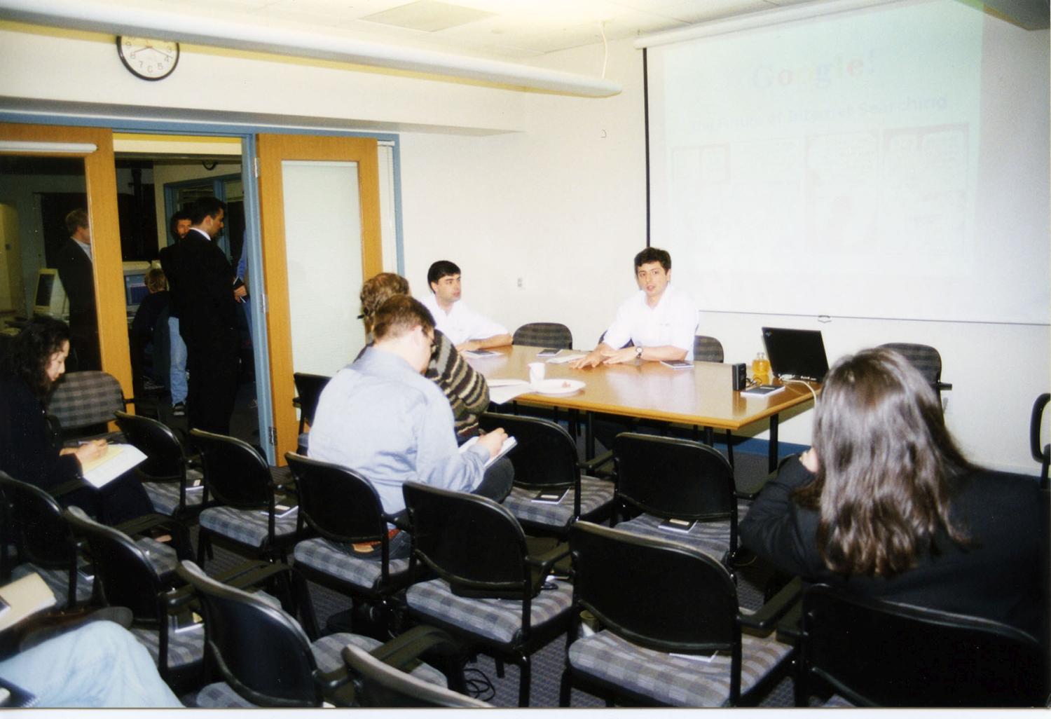 Googles erste große Pressekonferenz fand am 7. Juni 1999 statt, bei der Larry und Sergey die Mission und Vision für Google mit Reportern teilten und 25 Millionen Dollar für die Finanzierung durch Sequoia und Kleiner Perkins ankündigten.
