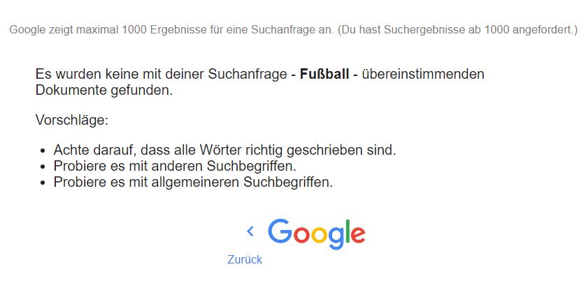 Google zeigt maximal 1000 Ergebnisse für eine Suchanfrage an. (Du hast Suchergebnisse ab 1000 angefordert.)