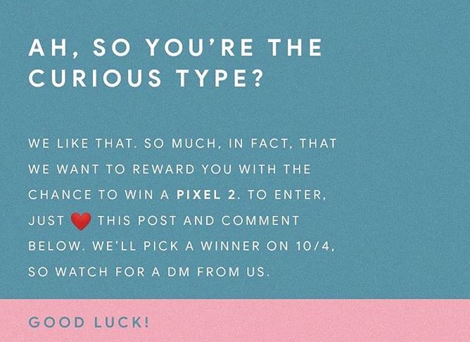 Verlost wird ein Pixel 2-Smartphone, wobei ich dahinter ein großes Fragezeichen machen würde. Sinnvoller wäre es natürlich, ein Pixel 3-Smartphone zu verlosen – aber vielleicht wollte das Marketing diese Bezeichnung noch nicht verwenden. Außerdem geht nicht klar hervor, ob nur EIN Smartphone verlost wird, oder ob es eins pro Foto ist. Ausgelost wird der Gewinner am 4. Oktober (wieder das merkwürdige Datum) – also schon diesen Donnerstag. Benachrichtigt wird man per Direct Message.