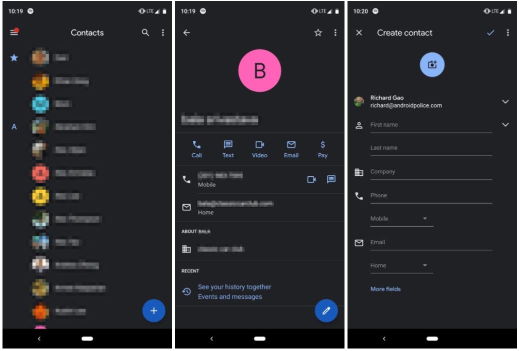 Google Contacts hat vor einigen Monaten ein neues Design unter Android bekommen und gehörte damit zu den ersten Apps, die in der neuen Designsprache dargestellt wurden – mit sehr viel Whitespace. Dieser kann nun ab der Version 3.2 dunkel eingefärbt werden und orientiert sich dann an den bereits bekannten Google-Apps, die in den vergangenen Wochen einen Dark Mode bekommen haben – siehe Liste oben.