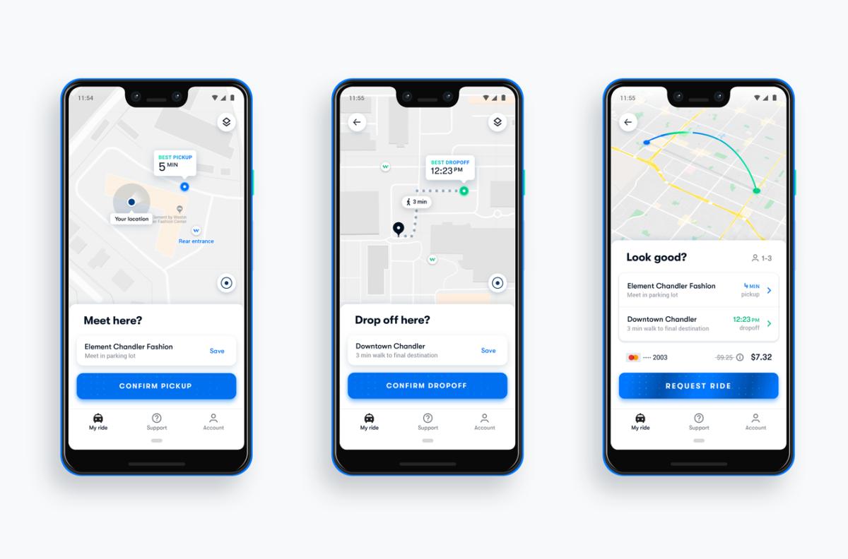 Oben seht ihr die App, mit der die Fahrzeuge bestellt und die gesamte Route geplant werden kann. Mit dieser erfolgt praktisch die Steuerung des Fahrzeugs, soweit das dem Nutzer möglich ist. Anschließend geht es an die Bezahlung, die derzeit noch mit sehr hohen Preisen abschreckt. Eine 8-Minuten-Fahrt schlägt mit über 7 Dollar zu Buche – kein Wucher, aber doch recht teuer. Dabei darf aber eben nicht vergessen werden, dass in jedem Fahrzeug noch ein Fahrer sitzt, der dafür bezahlt werden möchte. Fallen diese Kosten weg, werden auch die Preise stark sinken.