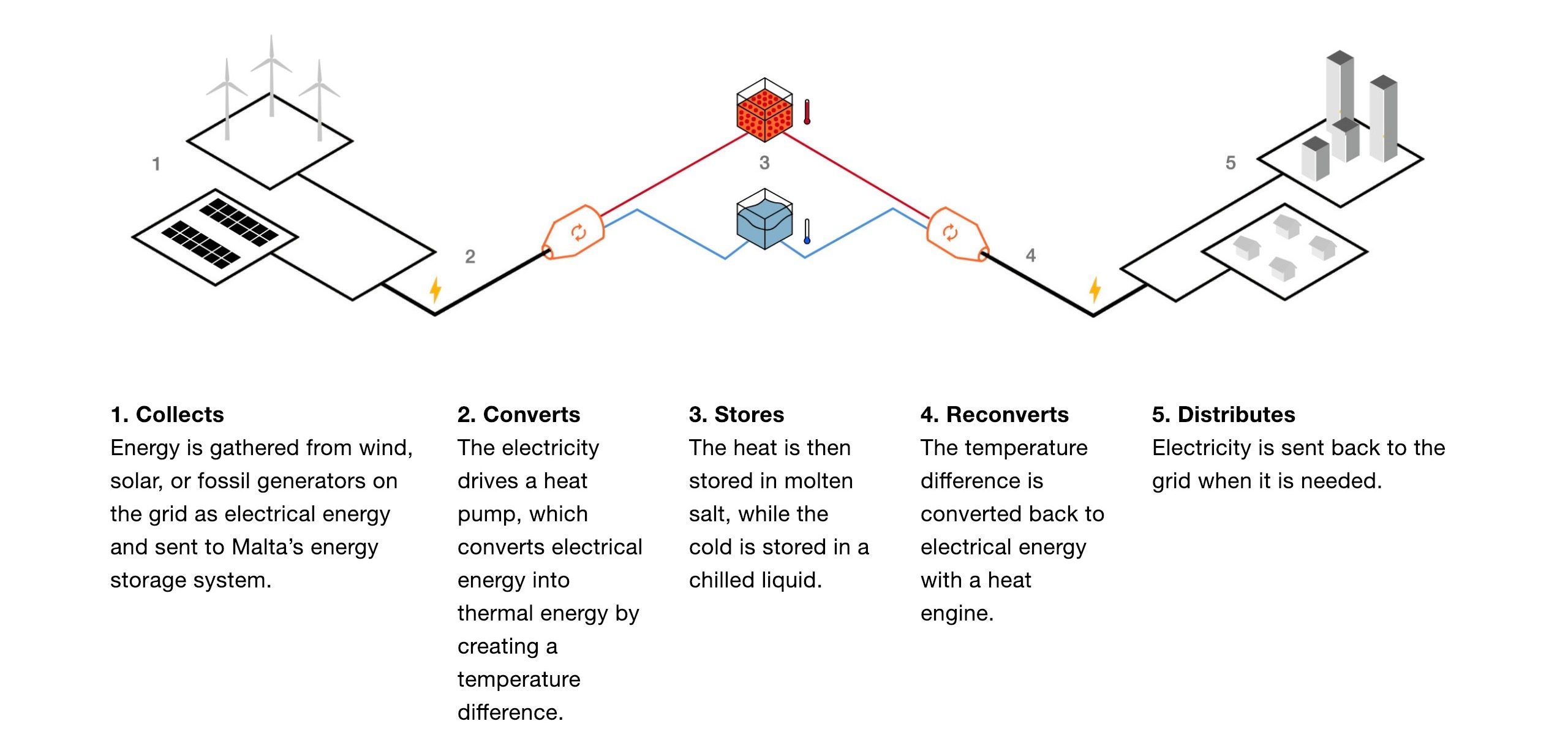 Malta wurde lange Zeit in der X-Abteilung von Alphabet entwickelt und ist nun bereit für die freie Wirtschaft: Das Unternehmen hat eine Methode entwickelt, mit der sich Energie für einen längeren Zeitraum günstig und ökologisch speichern lässt. Dazu setzt man vor allem auf Salzlösungen, in denen die Energie sowohl bei Hitze als auch bei Eiseskälte gespeichert wird und bei Bedarf wieder abgegeben werden kann.