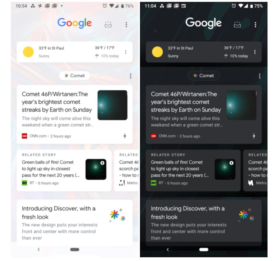 Obwohl Discover in den vergangenen Monaten nur sehr eingeschränkt zur Verfügung stand, konnte es doch schon von einigen Nutzern verwendet werden, die bereits interessante Dinge entdeckt haben: So testet Google tatsächlich Werbeanzeigen in Discover und wird diese wohl zukünftig zur Monetarisierung verwenden – das ist aber längst nicht sicher und könnte auch nur ein kleiner Test gewesen sein. Außerdem gibt es in Discover auch einen Dark Mode.
