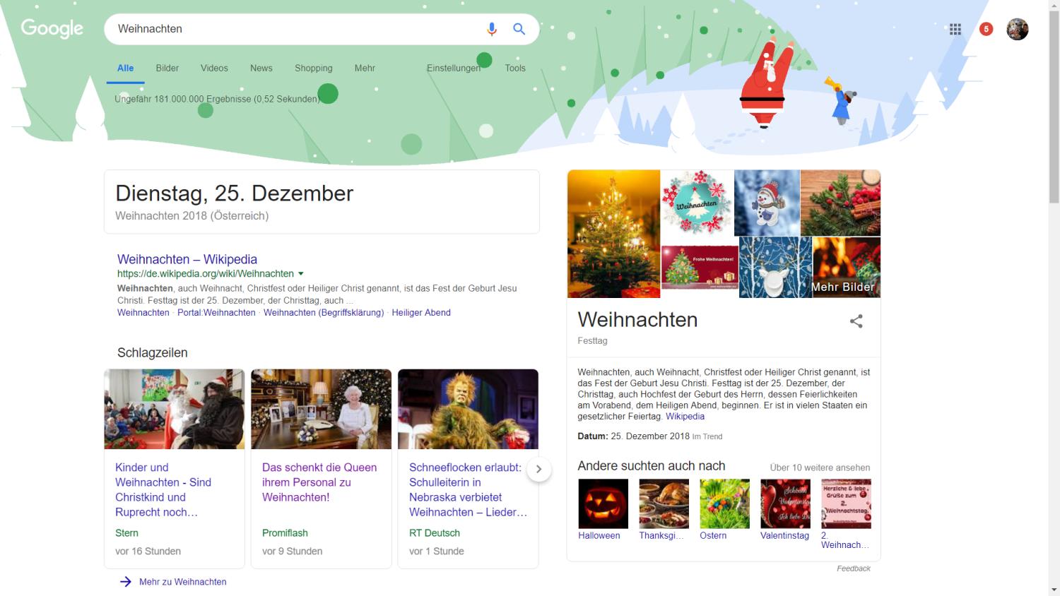 Weihnachten, Hanukkah, Festivus & Co: Google dekoriert die Websuche zu festlichen Suchbegriffen ??