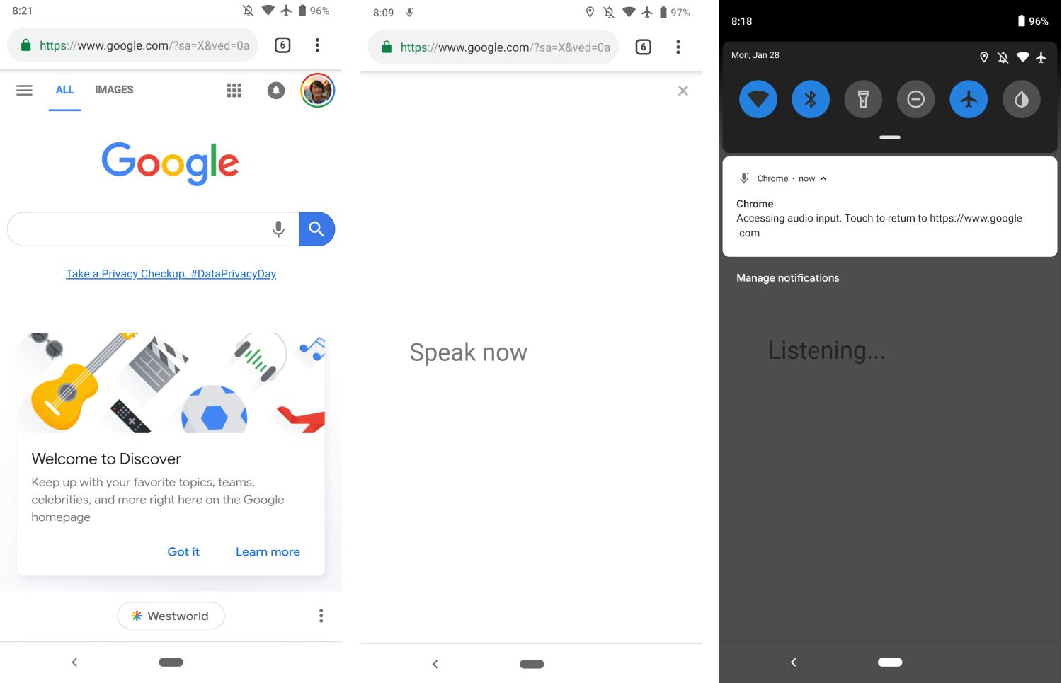 Auf der mobilen Startseite ist bei den ersten Nutzern nun das Mikrofon-Symbol direkt in der Suchleiste zu sehen und ermöglicht es, eine Suchanfrage per Spracheingabe abzusetzen. Die Aufnahme des Sprachbefehls wird im Vollbild dargestellt, anders als etwa auf dem Desktop. Direkt nach der Aufnahme wird die Anfrage dann wie gewohnt ausgeführt, womit die Spracheingabe ihre Aufgabe dann auch schon wieder erfüllt hat.