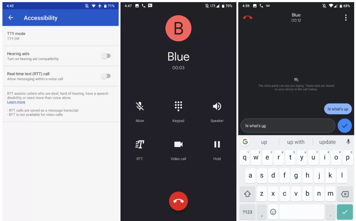 Das neue Feature in der Google Telefon-App nennt sich im Englischen einfach „Real-Time Text“ (RTT) und steht ab der Version 29 der App in den Einstellungen zur Aktivierung bereit. Hat man diese Option aktiviert, lassen sich während eine laufenden Telefonats Textnachrichten in Echtzeit eingeben und versenden. Echtzeit bedeutet in dem Fall, dass jeder Tastendruck unmittelbar beim Gegenüber ankommt und dieser somit auch Tippfehler, Korrekturen und andere Dinge direkt sieht – eben so wie die Stimme bei einem Telefonat.
