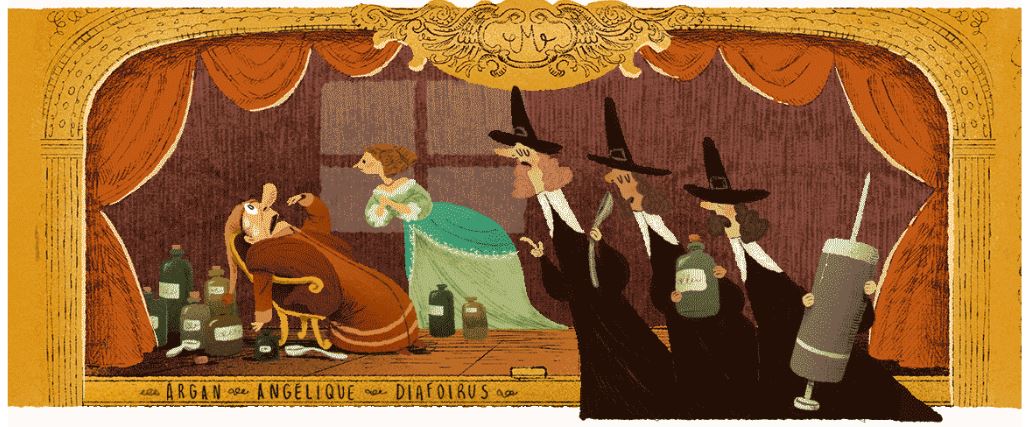 Heute ehrt Google den französischen Schauspieler, Theaterdirektor und Dramatiker Molière (Jean-Baptiste Poquelin) auf vielen internationalen Startseiten mit einem sehr schönen Doodle. Das Slideshow-Doodle wird anlässlich der Uraufführung von Molières letztem Werk „der eingebildete Kranke“ geschaltet, die heute vor mittlerweile 346 stattfand. Da er nur wenige Stunden nach der Aufführung starb, blieb gerade dieses Stück für immer mit seinem Namen verbunden.