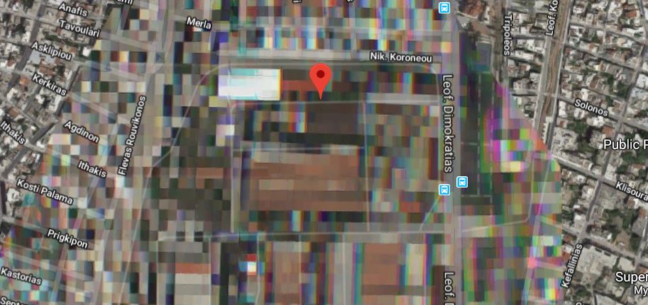 Diese Militärbasis mitten in der griechischen Hauptstadt dürfte nicht ganz so geheim sein, ist aber dennoch in der Satellitenansicht stark verpixelt.
