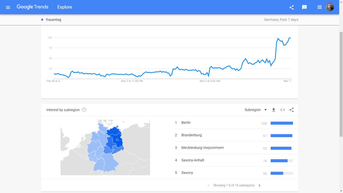 Top Fragen zum Internationalen Frauentag in Deutschland, letzte 7 Tage