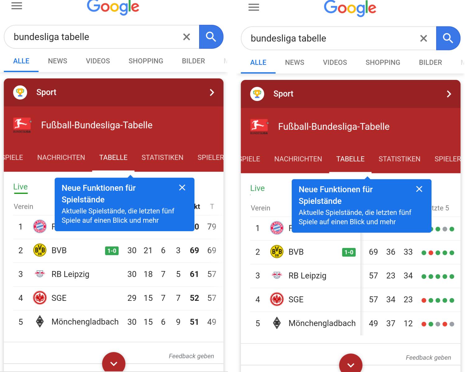 Bundesliga: Google Websuche zeigt nun noch mehr Informationen in der Tabelle und den Spielständen