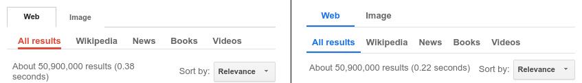 Sowohl die mobile Ansicht als auch die Desktopversion der Custom Search Engine wurde nun aktualisiert und sowohl den neuen Design-Richtlinien angepasst als auch von einigen kleineren Bugs befreit. Wie auf dem ersten Screenshot (links) sehr gut ersichtlich ist, bestand die Navigation teilweise aus zwei Zeilen, was optisch nicht unbedingt die beste Lösung gewesen ist. Zumindest für das Beispiel ist das nun nicht mehr der Fall.