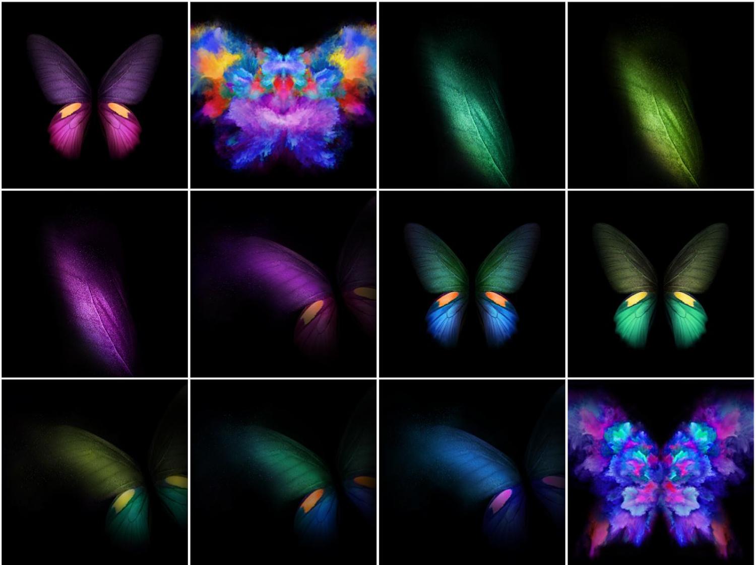 Ein solches Display benötigt aufgrund des doppelt verbauten Bildschirms keine besonderen Wallpaper, was bei Huawei etwas anders ist, aber dennoch möchte Samsungs Marketing natürlich, dass die neue Bauform so gut wie möglich repräsentiert wird. Als Testimonial hat man sich dann einen Schmetterling ausgewählt, der auf den Wallpapern immer wieder in verschiedenen dunklen bunten Farben zu sehen ist. Zusätzlich gibt es auch vier Videos, die beim ersten Aufklappen abgespielt werden und auf jedem Samsung-Smartphone ab Android 8.0 Oreo verwendet werden können.