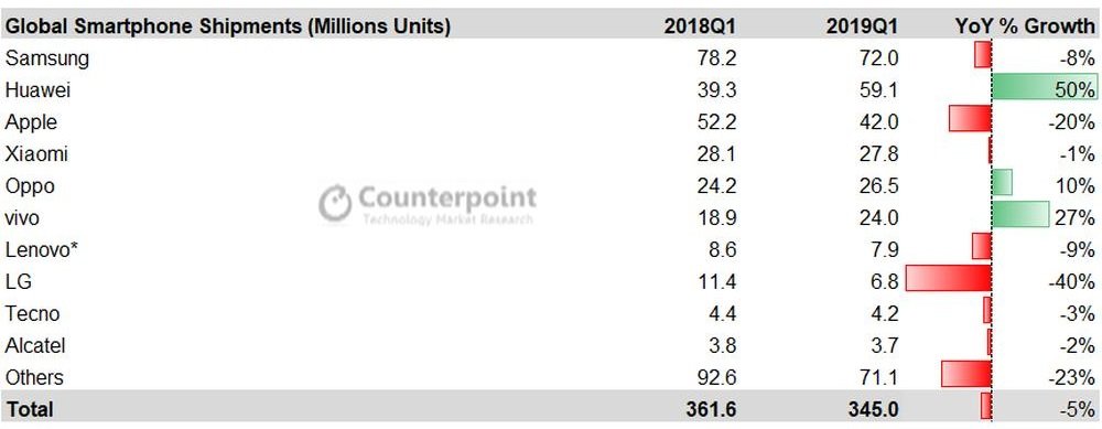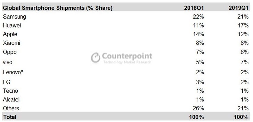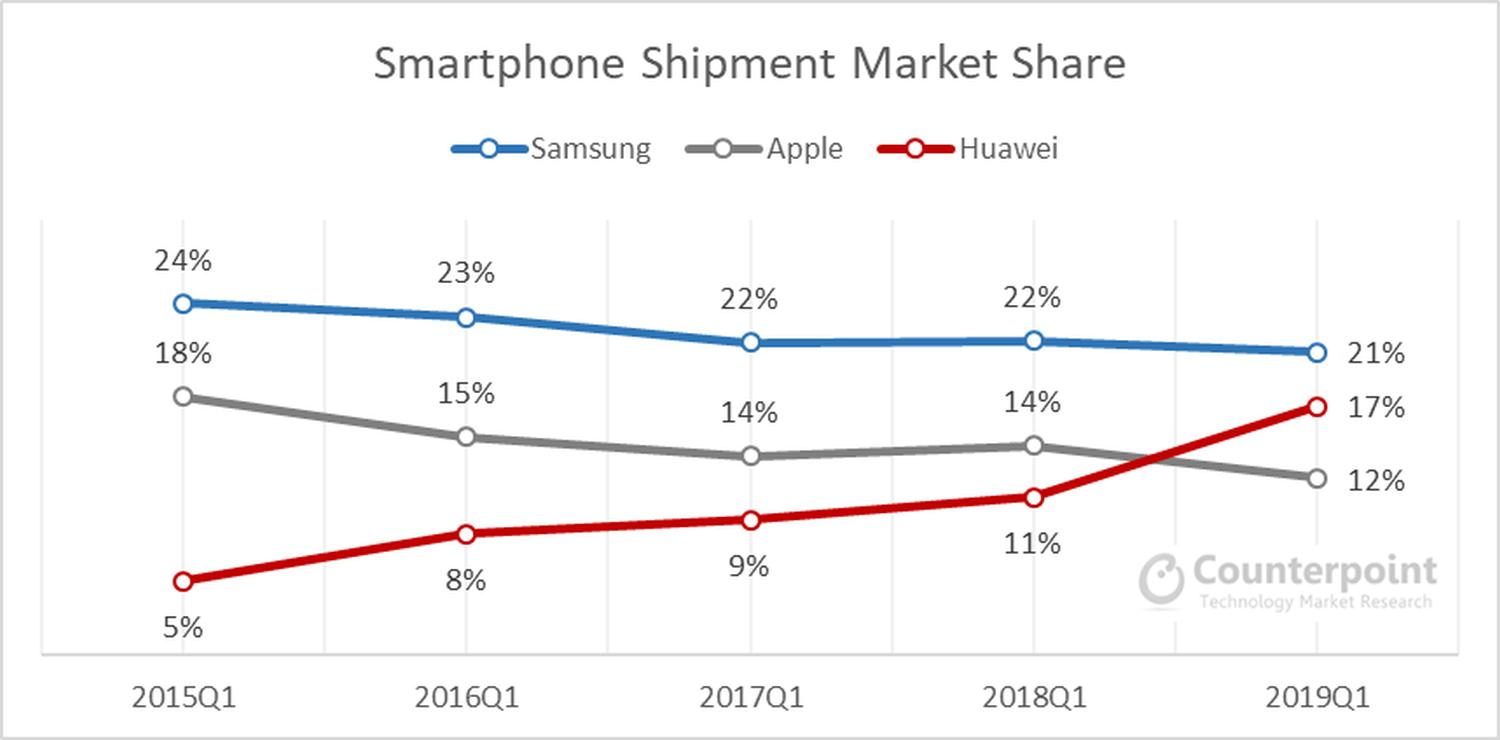 Huawei überholt Apple: Smartphone-Verkäufe Q1/2019 weiter gesunken & Android liegt bei 88 Prozent Anteil