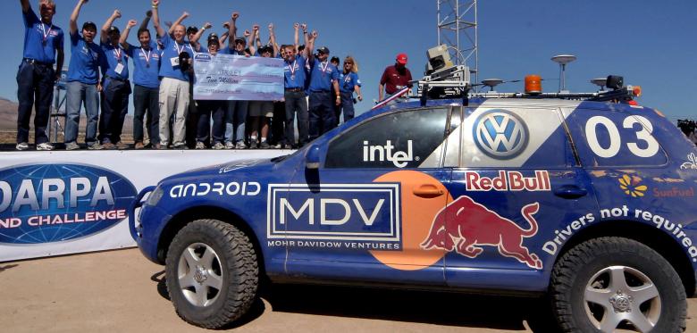 Das Self Driving Car Projekt hat seine Ursprünge und Wurzeln in der DARPA-Challenge. Google war bereits im Jahr 2007 an der Technologie interessiert und war nicht nur einer der Sponsoren (siehe vordere Kotflügel), sondern baute auf Grundlage dieser Technologie und des Teams die eigene Abteilung aufgebaut. Und diese fuhr zu Beginn mit Volkswagen-Fahrzeugen, wobei die Wolfsburger zugleich ein wichtiger Sponsor des Wettbewerbs waren. Ohnehin liegen die Grundlagen des autonomen Fahrens bereits mehr als 30 Jahre zurück und stammten aus Deutschland (sehr interessantes Video, schaut es euch einmal an).
