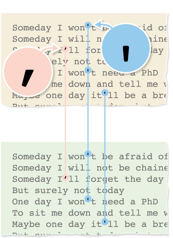 Tatsächlich hat Genius auch in mehr als 100 Fällen Beweise dafür, dass die Songtexte aus der eigenen Datenbank stammen: Das Portal hat in vielen Songtexten einfach mehrere Apostrophen (‚) eingesetzt, die dort nicht hingehören und in Form eines Morsecodes stets die Botschaft „Red Handed.“ enthalten. In anderen Fällen hat man einen gerade gegen einen schrägen Apostroph – und umgekehrt – getauscht (siehe Screenshot unten). Und tatsächlich sollen in allen Fällen nach einiger Zeit bei Google die gleichen Songtexte mit den gleichen Apostrophen aufgetaucht sein. Eine eindeutige Situation?