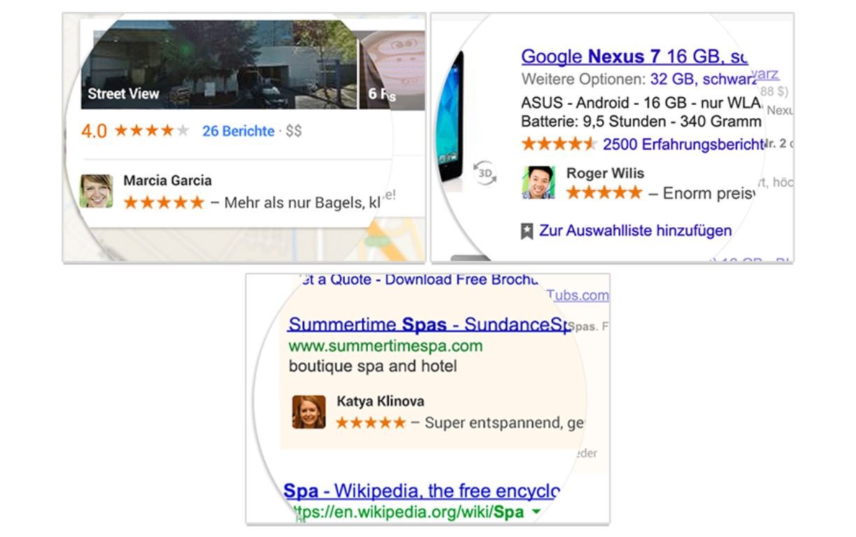 Diese „Sozialen Empfehlungen“ können in allen Google-Werbeanzeigen auftauchen, aber auch im Play Store, bei Google Maps oder in der Produktsuche verwendet werden.