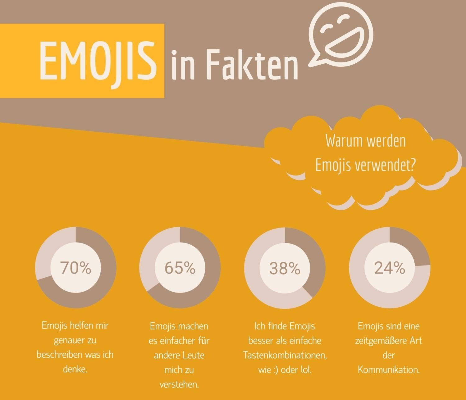 Emojis gehören selbst außerhalb der Kommunikation zum Alltag und begegnen uns auch in der Offline-Welt immer häufiger. Da sich die Vorgänger der Emojis, die „Smileys“ bereit vor Jahrzehnten etabliert haben, ist es auch nicht verwunderlich, dass sie über alle erfassten Altersgruppen hinweg gleichermaßen beliebt. Die Beweggründe zur Nutzung sind allerdings recht unterschiedlich, was doch ziemlich interessant ist. Nur jeder Vierte verwendet sie, weil sie zur zeitgemäßen Kommunikation gehören.