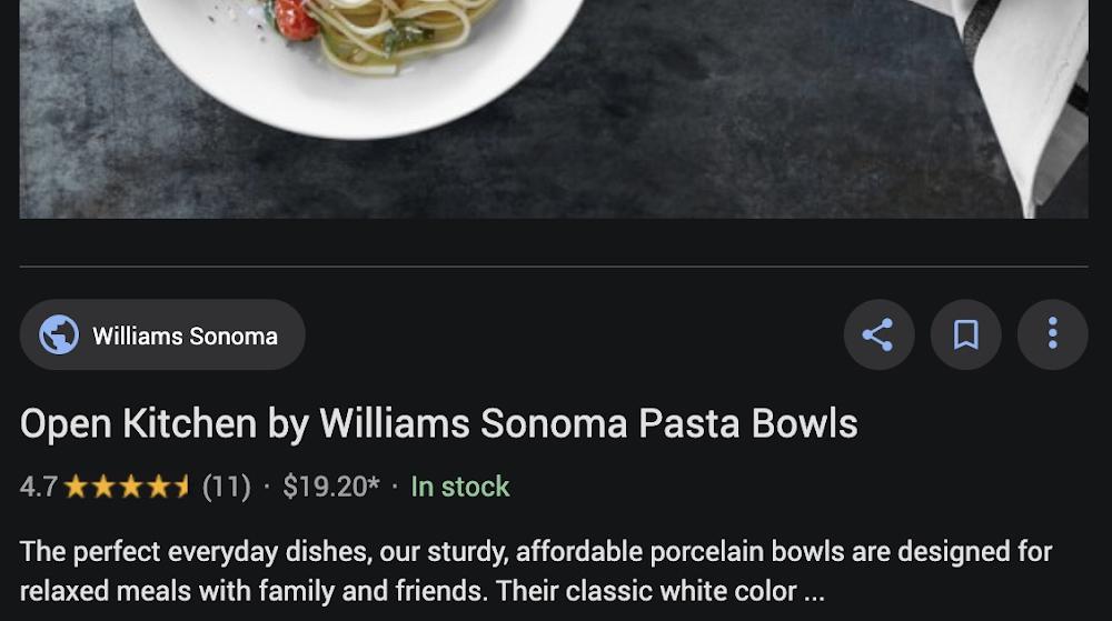 Die Bildersuche soll mithilfe dieses neuen Designs nun aber auch noch stärker monetarisiert werden, denn wenn sich Ergebnisse aus einer Produktsuche darunter befinden bzw. Daten aus Onlineshops zur Verfügung stehen, kann der Nutzer direkt Informationen zum Händler sowie den aktuellen Preis sehen. Sogar der aktuelle Bestand bzw. die Information, ob das Produkt derzeit vorrätig ist, kann in der Bildersuche nun angezeigt werden.