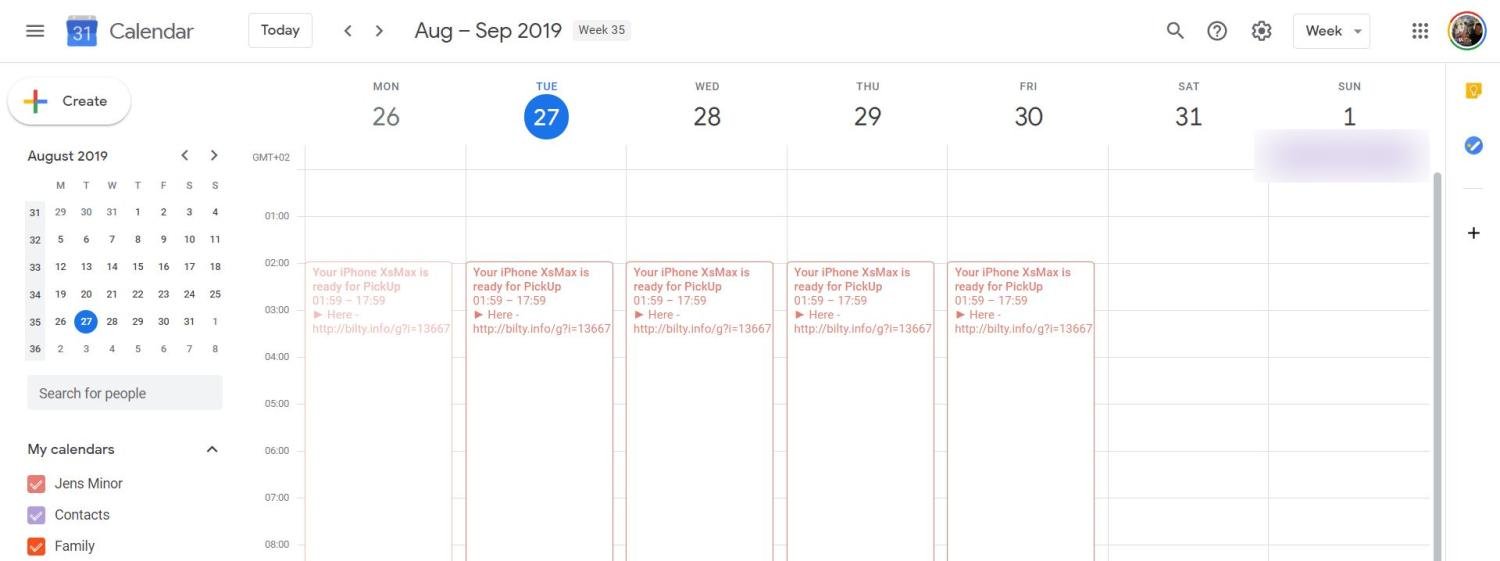 Es gibt unzählige Kalender-Apps für alle Plattformen und auch im Web, aber der Google Kalender erfreut sich durch seine starke Cloud-Synchronisierung und auch die Anbindung an GMail oder Google Maps großer Beliebtheit – das wissen auch die Spammer. Wohl wissend, dass der Kalender keinen echten Spamfilter hat, macht derzeit eine große Spamwelle die Runde, die den Nutzern kostenlose iPhones und andere begehrte Güter verspricht. Und das gleich an mehreren Tagen oder sogar Wochen nacheinander.