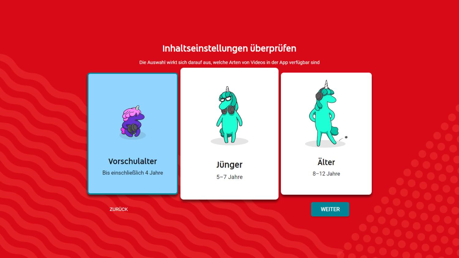 - YouTube Kids für drei verschiedene Altersstufen auswählen