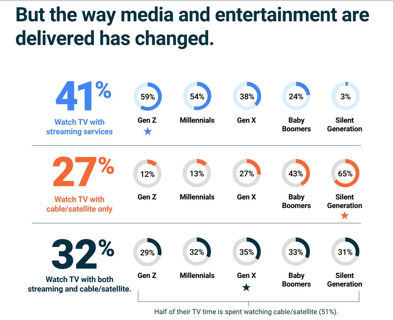 61 Prozent hingegen möchten den Fernseher gerne per Sprache steuern, 32 Prozent möchten alle Streaming-Anbieter unter einem Dach mit einem einheitlichen Tarif und jeder Dritte verwendet die überall angebotenen Probe-Abos.