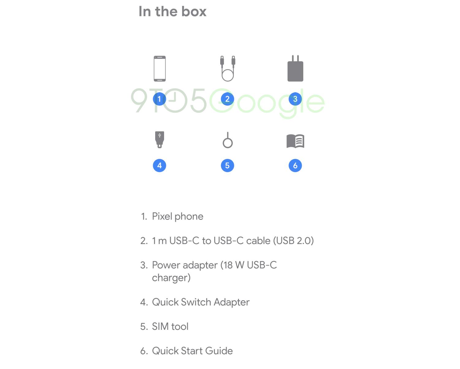 Obiger Screenshot informiert über das in der Packung enthaltene Zubehör. Natürlich ist ein Smartphone dabei, dann ein USB-C 2.0 Kabel, ein Stromadapter, ein Quick Switch Adapter, der Draht zum Öffnen des SIM-Schachts sowie die Anleitung. Aufmerksame Leser werden bemerkt haben, dass es in diesem Jahr keine Kopfhörer dazu gibt. Die sollt ihr bitte separat kaufen – am besten natürlich die Pixel Buds 2.