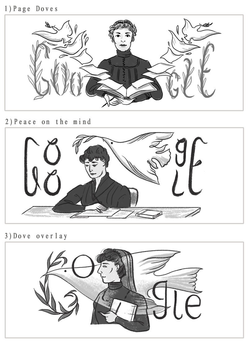 Das heutige Google-Doodle für Bertha von Suttner wurde von der bei Google angestellten Künstlerin Alyssa Winans erstellt, die sich auf der Detailseite des Doodles rund um das heutige Thema äußert.