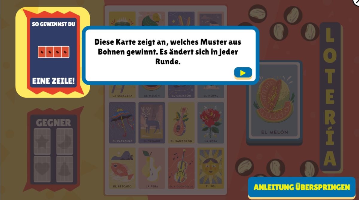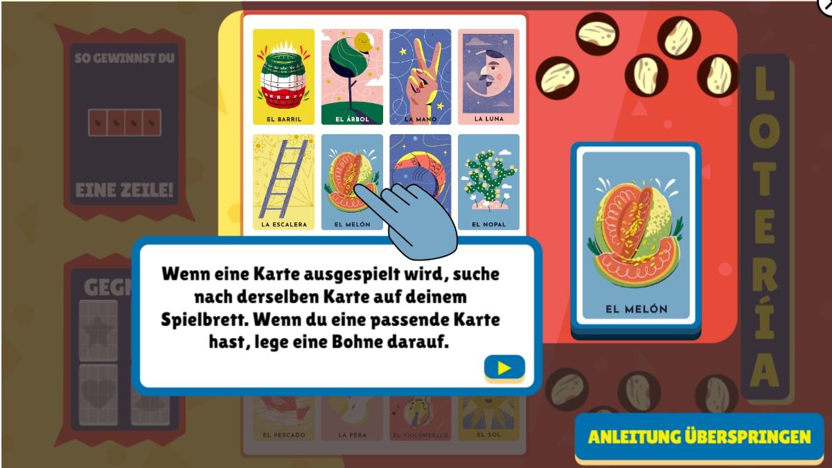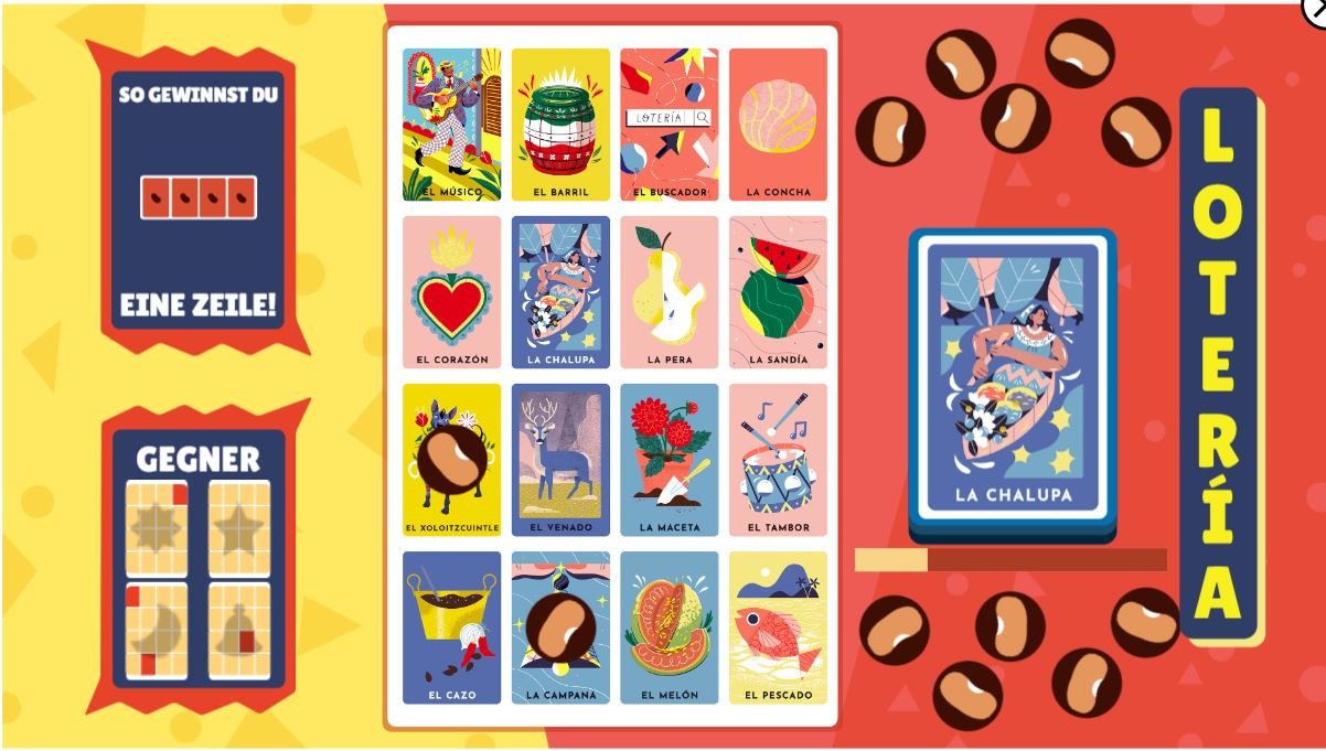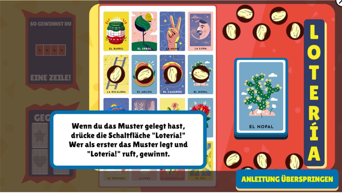 Wenn du das Muster gelegt hast, drücke Schaltfläche „Loteria!“ Wer als erster das Muster legt und „Loteria“ ruft, gewinnt.