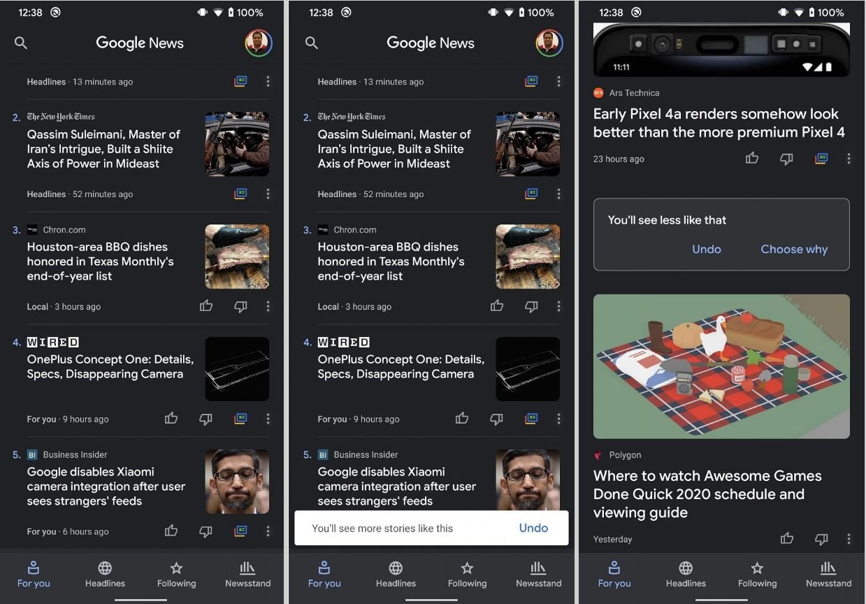 Bei den Google News finden aktuell einige Umbauarbeiten statt, denn nach dem Rauswurf der Magazine und Zeitschriften wird nun der Nachrichten-Bereich aufgebohrt. In der aktuellen Version der Android-App wurde nun ein erweiterter Dark Mode sowie eine neue Bewertungsmöglichkeit für einzelne Schlagzeilen entdeckt. Beides ließ sich durch einen Umweg bereits aktivieren und testen.