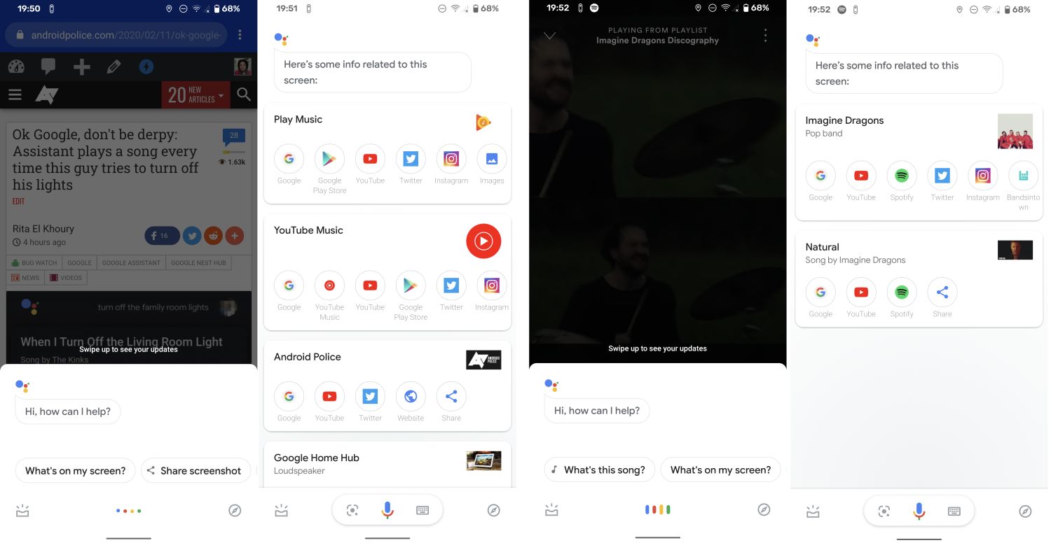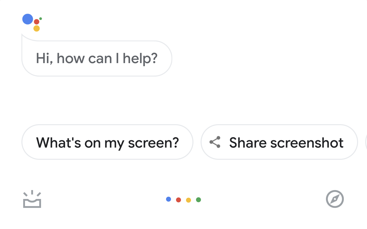 Mit dem Google Assistant war es bis etwa Mai 2019 möglich, sich Kontextinformationen über die aktuelle Darstellung auf dem Bildschirm zu besorgen. Dazu musste lediglich der Google Assistant aufgerufen und direkt mit der Frage „Was ist auf meinem Bildschirm?“ angesprochen werden. In den allermeisten Fällen gab es dafür auch einen Vorschlag, sodass auch ein einfacher Touch auf den vorgeschlagenen Chip diese Informationen liefern konnte.