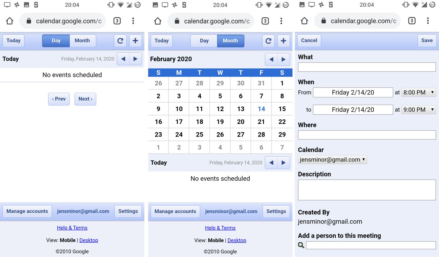 Die meisten Menschen dürften Google Kalender heute als Smartphone-App verwenden, gefolgt von der im Browser laufenden Desktop-Version. Die Unterschiede sind sowohl von der Oberfläche als auch im Funktionsumfang recht groß. Weil der Kalender schon vor gut 14 Jahren im Browser gestartet ist, noch bevor es Android und die Android-Apps gegeben hat, gab es lange Zeit eine mobile Version für den Smartphone- oder gar noch Handy-Browser. Und die gibt es auch heute noch.