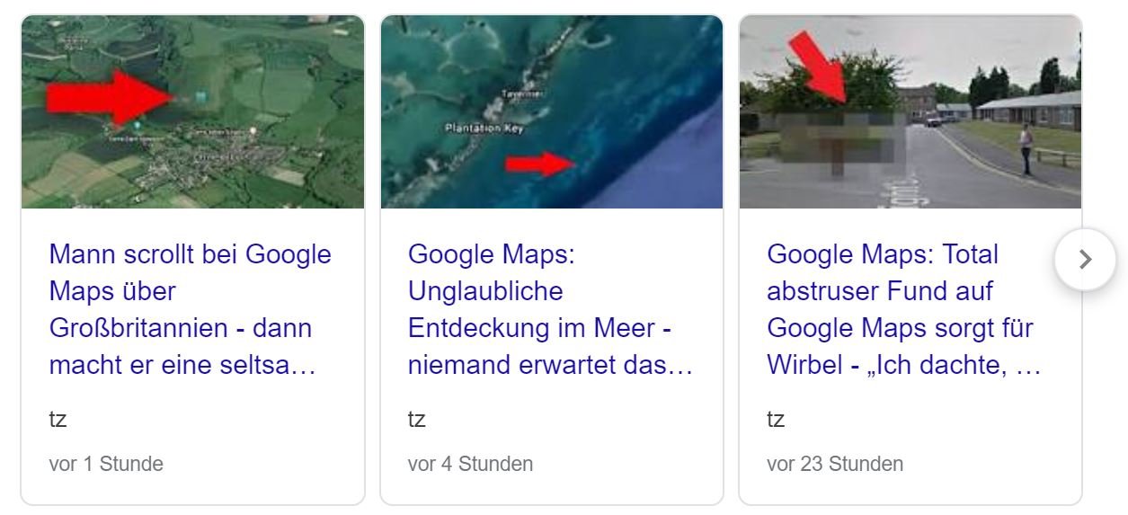 Eine neue Instagram-Seite hat es sich zur Aufgabe gemacht, all diese Entdeckungen innerhalb von Google Maps und Google Earth zu sammeln und jeden Tag zu veröffentlichen. Letztes Versprechen konnte man zwar schon jetzt nicht mehr einhalten, aber dennoch gibt es bei Google Earth Finder schon einige interessante und vor allem auch kuriose und unterhaltsame Dinge zu entdecken. Viele Nutzer senden ihre eigenen Fundstücke ein oder die Seite nutzt auch häufiger TikTok als Quelle.