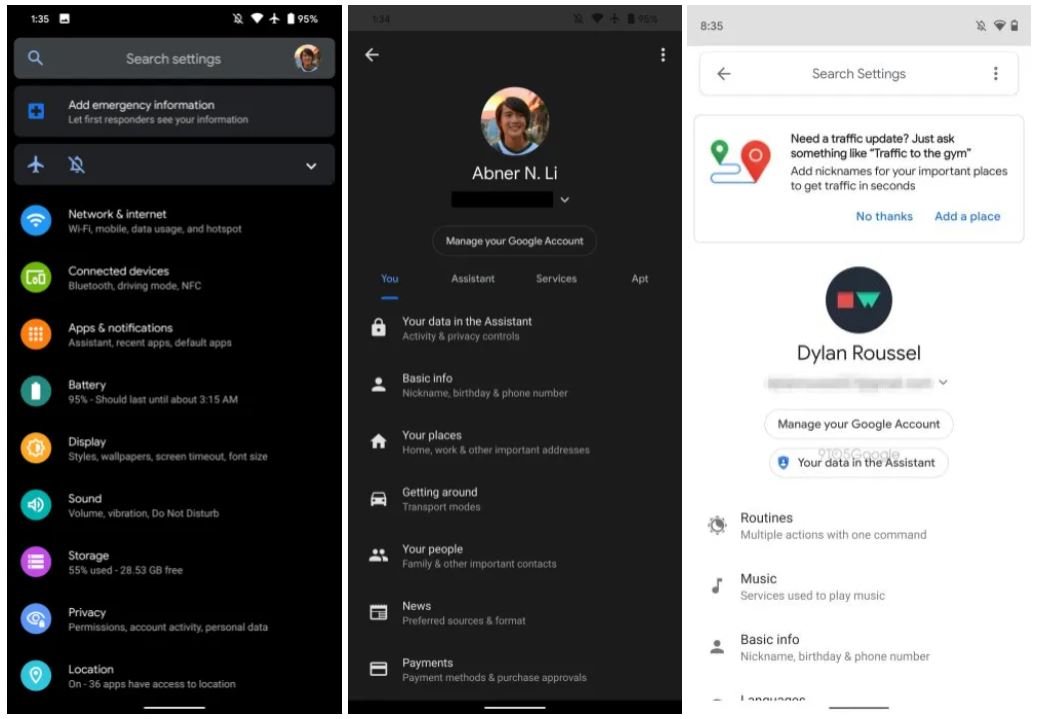 Auf obigen Screenshots seht ihr ganz Links als Referenz die Android-Einstellungen, in der Mitte die aktuellen Google Assistant-Einstellungen und auf dem rechten Screenshot das kommende Design dieser Optionen. Wie sehr gut zu sehen ist, verzichtet man nun vollständig auf die Tabs und bietet stattdessen wieder eine lange Liste an. Diese ist aber natürlich ordentlich zusammengestaucht worden und soll den Nutzern die wichtigsten Einstellungen ganz oben anbieten und somit für mehr Übersicht sorgen.
